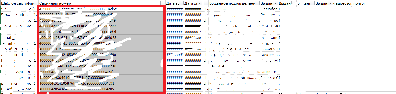 ما لیست را در اکسل باز می کنیم و پارامترهای لازم را با استفاده از فیلتر مرتب می کنیم ، در این حالت با فیلد "واحد صادر شده" در لیست نتیجه ، قسمت "شماره سریال" را انتخاب کرده و آن را در پرونده آزمایش کپی کنید.