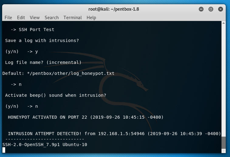 به محض شروع honpot ، سعی کنید به کامپیوتر SSH در رایانه کالی لینوکس (از دستگاه دیگر) وصل شوید و خواهید دید. مجله pentbox به عنوان مثال