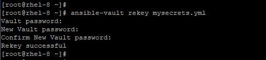 در صورت احساس نیاز به تغییر رمز عبور vault ، می توانید به راحتی این کار را انجام دهید دستور rekey ansible-طاق ، همانطور که در زیر نشان داده شده است.