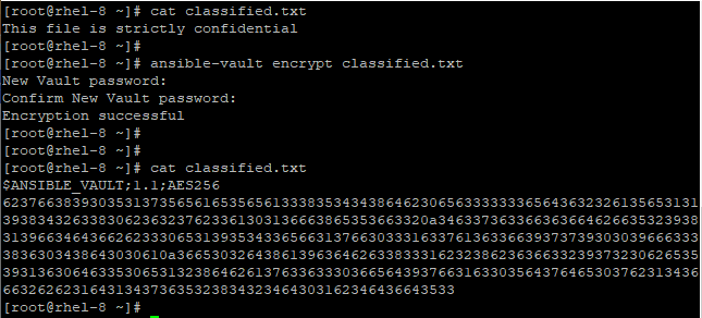 Ansible Vault می تواند متغیرها یا حتی کل فایلها و کتابهای YAML را رمزگذاری کند ، مانند ما. بعداً نشان خواهیم داد.
