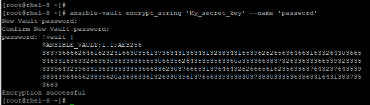 این کار با استفاده از دستور ansible-vault encrypt_string انجام می شود ، همانطور که در زیر نشان داده شده است: