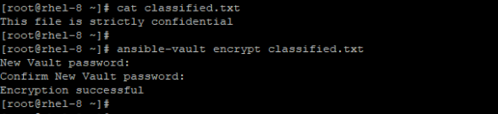 فرض کنید می خواهید یک فایل رمز نشده رمزگذاری کنید ، می توانید این کار را با اجرای دستور رمزگذاری ansible-vault انجام دهید ، همانطور که در زیر نشان داده شده است: