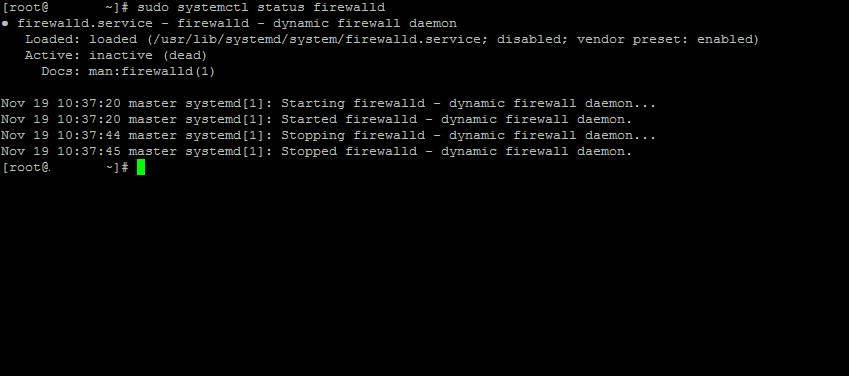 از خروجی فوق می توانیم مشاهده کنیم که Firewalld در حال اجرا و کار است. [19659020] اکنون بیایید ببینیم که چگونه می توانیم فایروال را متوقف کنیم.