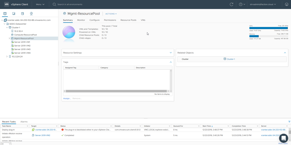 در مورد ما ، برای اعتبارسنجی کارایی راه حل DRaaS ، ما یک آزمایشگاه تمام فلش Dell EMC Unity XT 480F را در آزمایشگاه سینسیناتی ما پیکربندی کردیم. از طریق اتصال IP ایمن ، ما ذخیره سازی را به دیتابیس Faction در ویرجینیا ، که در مجاورت مکان ابر AWS قرار دارد ، قرار دادیم که در نهایت میزبان VMware VMware ما خواهد بود. پس از تأیید موفقیت آمیز در تکرارها ، ما با استفاده از Faction در فرایند خرابکاری کار کردیم ، و اعلام کرد که یک خرابی مرکز داده است. Faction به وظیفه خود ادامه داد ، و تصویری از آخرین تکرارهای ما نصب کرد ، VM را در محیط ESXi خود ثبت کرد و vMotion داغ آنها را در AWS SDDC قرار داد. حتی بهتر ، ما مجبور بودیم تقریباً هیچ کاری انجام دهیم تا همه این تلاش ها را تحمل کنیم.