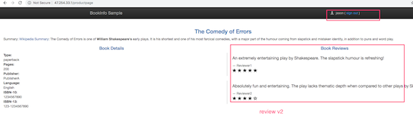 virtualservice.networking. istio.io/reviews پیکربندی شدهاگر عنوان کاربر جیسون است ، به [ بررسی ها هدایت می شود: v2 .