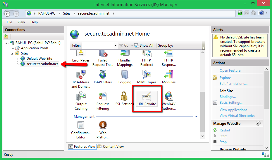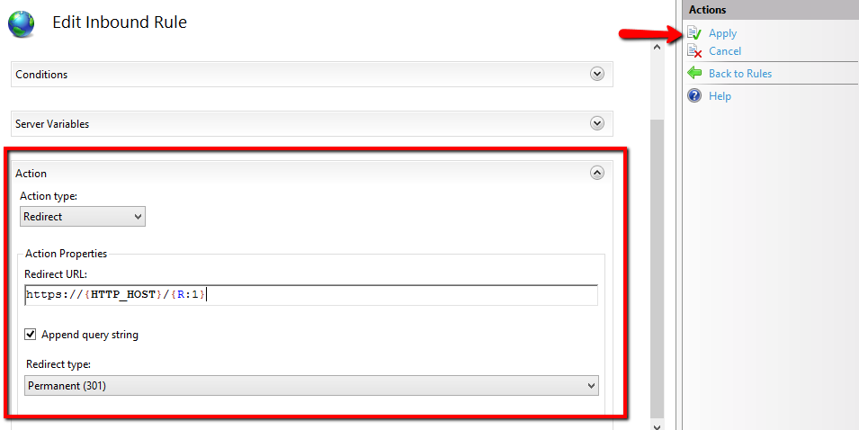 پس از اتمام نصب ، این مراحل را دنبال کنید تا مسیر تغییر مسیر HTTPS در IIS انجام شود.