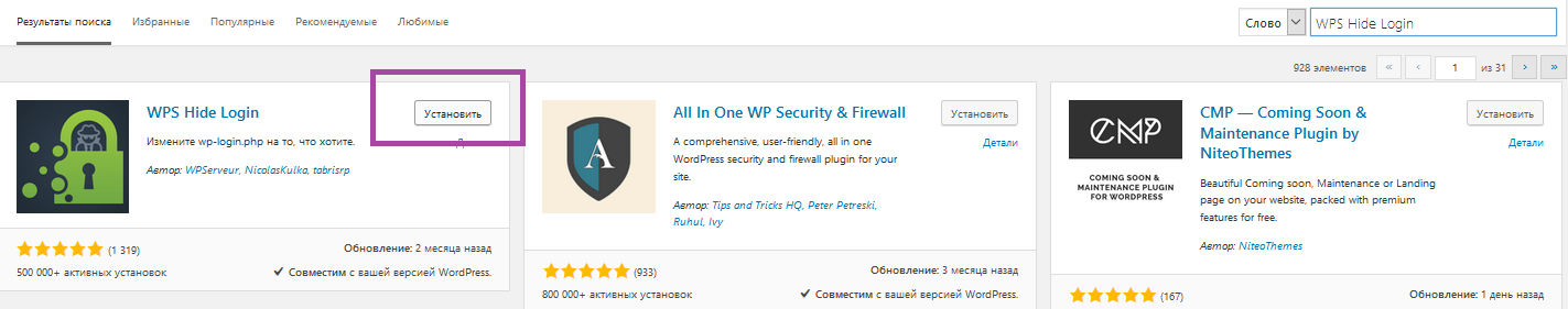 در نوار جستجو ، وارد "WPS Hide Login" شوید و را کلیک کنید "نصب کن".