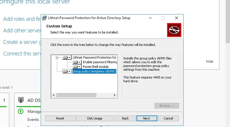 1. روی سرور DC AD انتخاب شده ، عامل LPP را نصب کنید. در حین نصب ، ما کلیه مؤلفه ها را انتخاب می کنیم ، زیرا می بینیم که نصب کننده شامل یک ماژول PowerShell و یک الگوی خط مشی گروهی (ADMX)