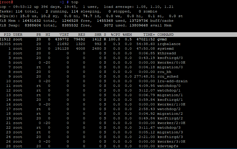 همانطور که از خروجی مشاهده می کنید ، روند gvmd 100٪ پردازنده را اشغال می کند
