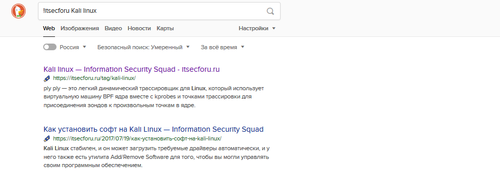 به عنوان مثال ، میانبر (البته!) برای وبلاگ ما itsecoforu.ru:ociation19659016†!itsecforuociation19659017†If شما وارد نوار جستجوی DuckDuckGo "! itsecforu kali linux" می شوید ، بلافاصله شما را به سمت وبلاگ ما هدایت می کند و نتایج مربوط به جستجوی جستجو "Kali linux" را نمایش می دهد. "