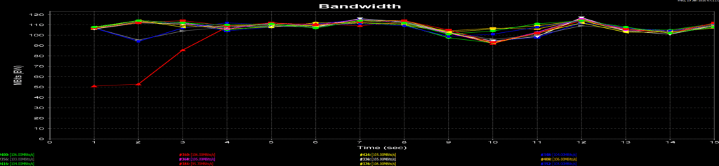 با استفاده از jperf توانستم به طور مداوم بیش از 1200Mbits / sec را با نتایج اوج 1413 Mbits / sec بدست آورم.