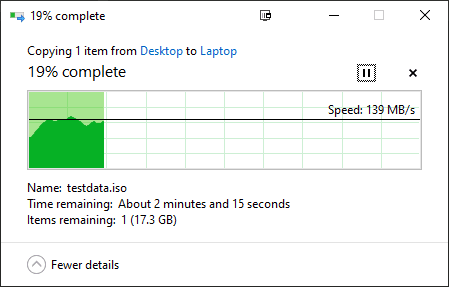 با انتقال 20 GB ISO من را تا سرعت 150 مگابایت در ثانیه و به طور مداوم در حدود 140 مگابایت در ثانیه به دست می آورد بنابراین 1120 تا 1200 مگابیت در ثانیه است.