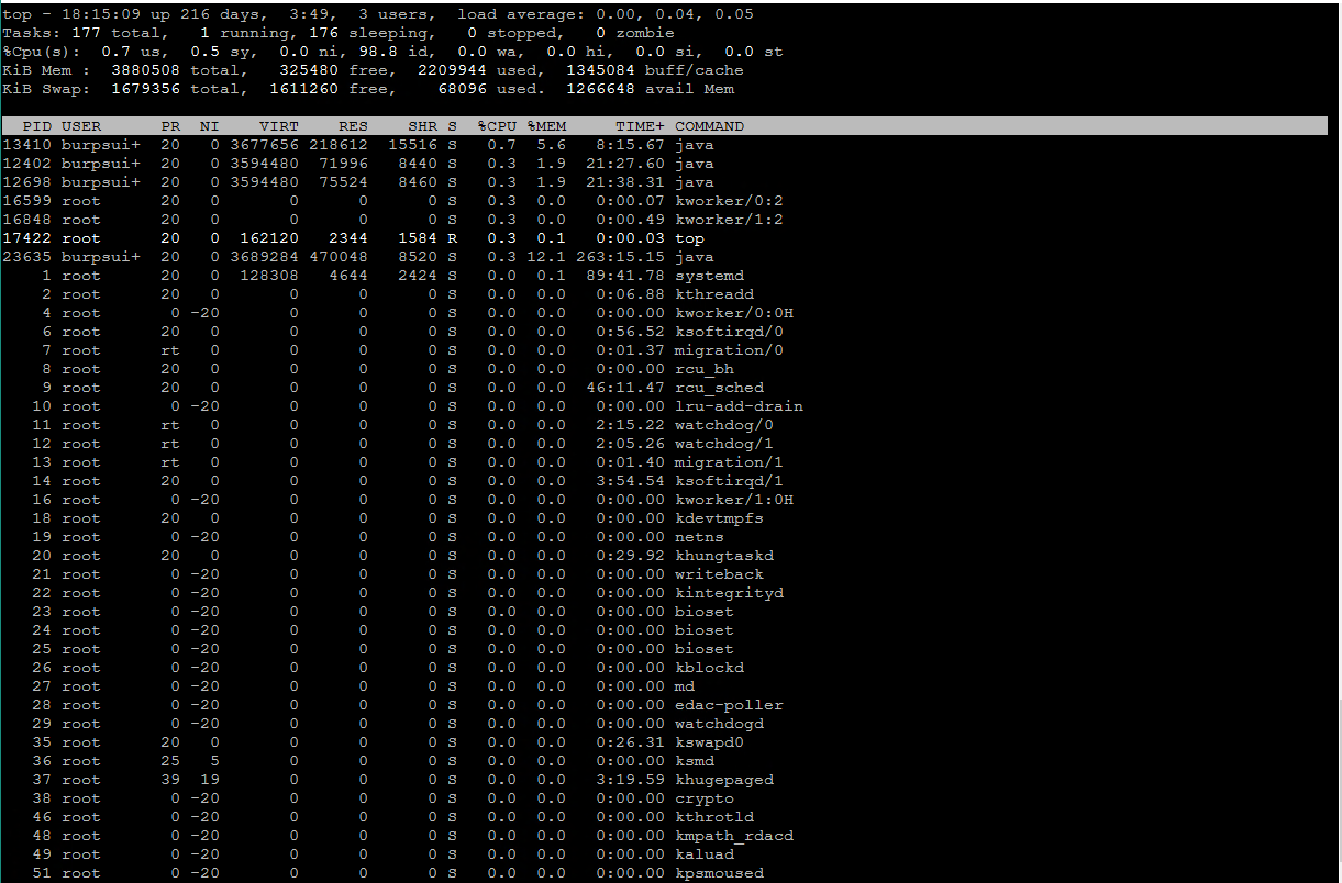 دومین راه برای مشاهده اطلاعات پردازش ، فرمان بالا است که CPU ، حافظه و na
