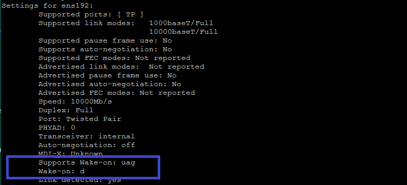 $ sudo ethtool ens192 | grep Wake-on پشتیبانی از Wake-on: pg Wake-on: gنحوه دائمی کردن تغییر با قانون udev