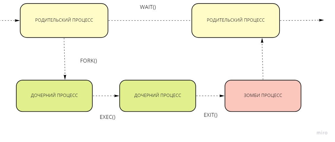 فرآیند والد وضعیت خروج از فرآیند زامبی را با استفاده از تابع انتظار () می خواند.